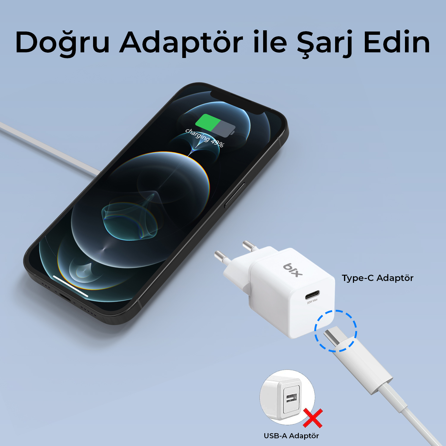 Type-C Şarj Portu + 1.2 Metre Kablo