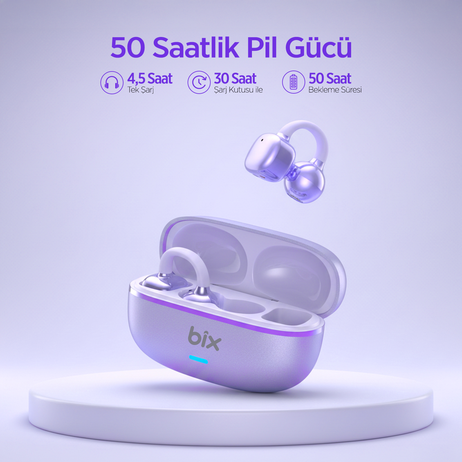 Bluetooth 5.4 teknolojisiyle donatılan Bix OWS1, önceki nesil kulaklıklara göre daha hızlı ve kararlı bağlantı sağlar. Müzik dinlerken kopma ve gecikme yaşamazsınız, oyunlarda düşük gecikme avantajıyla net performans alırsınız. Telefon görüşmelerinizde ses karşı tarafa temiz ve net aktarılır. HSP, HFP, A2DP ve AVRCP profilleriyle hem iOS hem Android cihazlarla uyumludur.