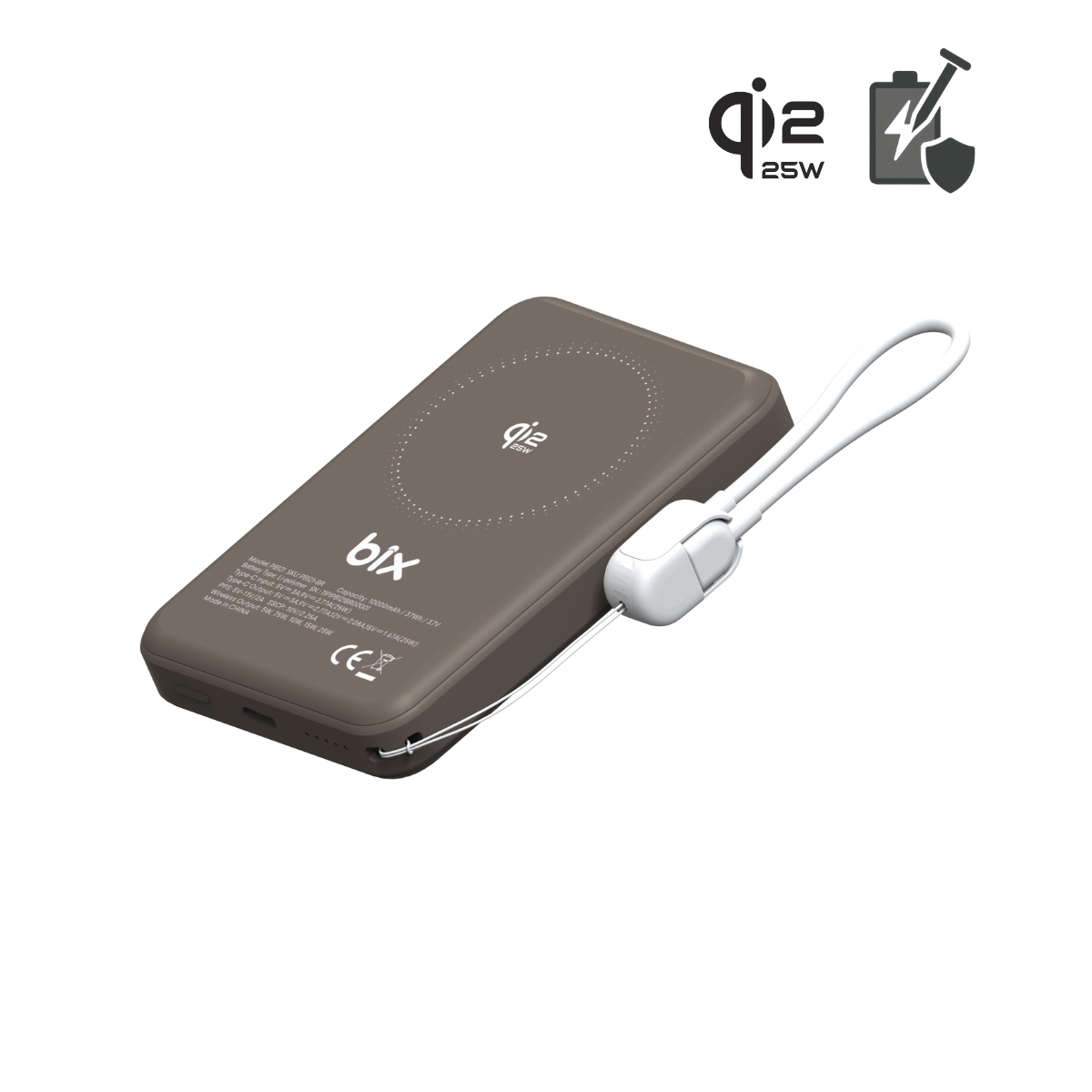 PB121 Qi2 25W Kablosuz Magsafe PD 3.0 10000mAh Semi-Solid State Bataryalı Powerbank Dahili USB-C Kablolu Taşınabilir Hızlı Şarj Cihazı Kahverengi