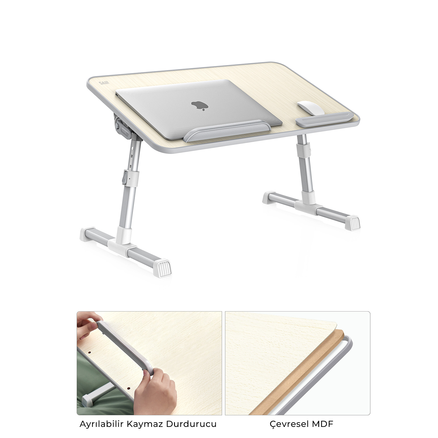 Sadece laptop masası olarak değil; aynı zamanda kitap okuma sehpası, çocuk çalışma masası, kahvaltı masası, tablet/monitör standı gibi farklı amaçlar için de kullanılabilen çok yönlü ve hafif bir üründür.