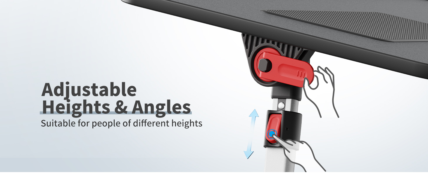 A8 Large, kullanıcıya özel ergonomi sunmak için 4 farklı açı ve 5 seviyeli yükseklik ayarıyla tasarlanmıştır. Masa açısı 0° ile 36° arasında ayarlanabilir; bu ayarlar yazı yazarken, çizim yaparken, video izlerken veya dik bir çalışma pozisyonu oluşturmak istediğinizde mükemmel uyum sağlar. Ayağın 240–320 mm arasında yükseltilebilmesi sayesinde masa, her boydan kullanıcı için ideal seviyeye getirilebilir.