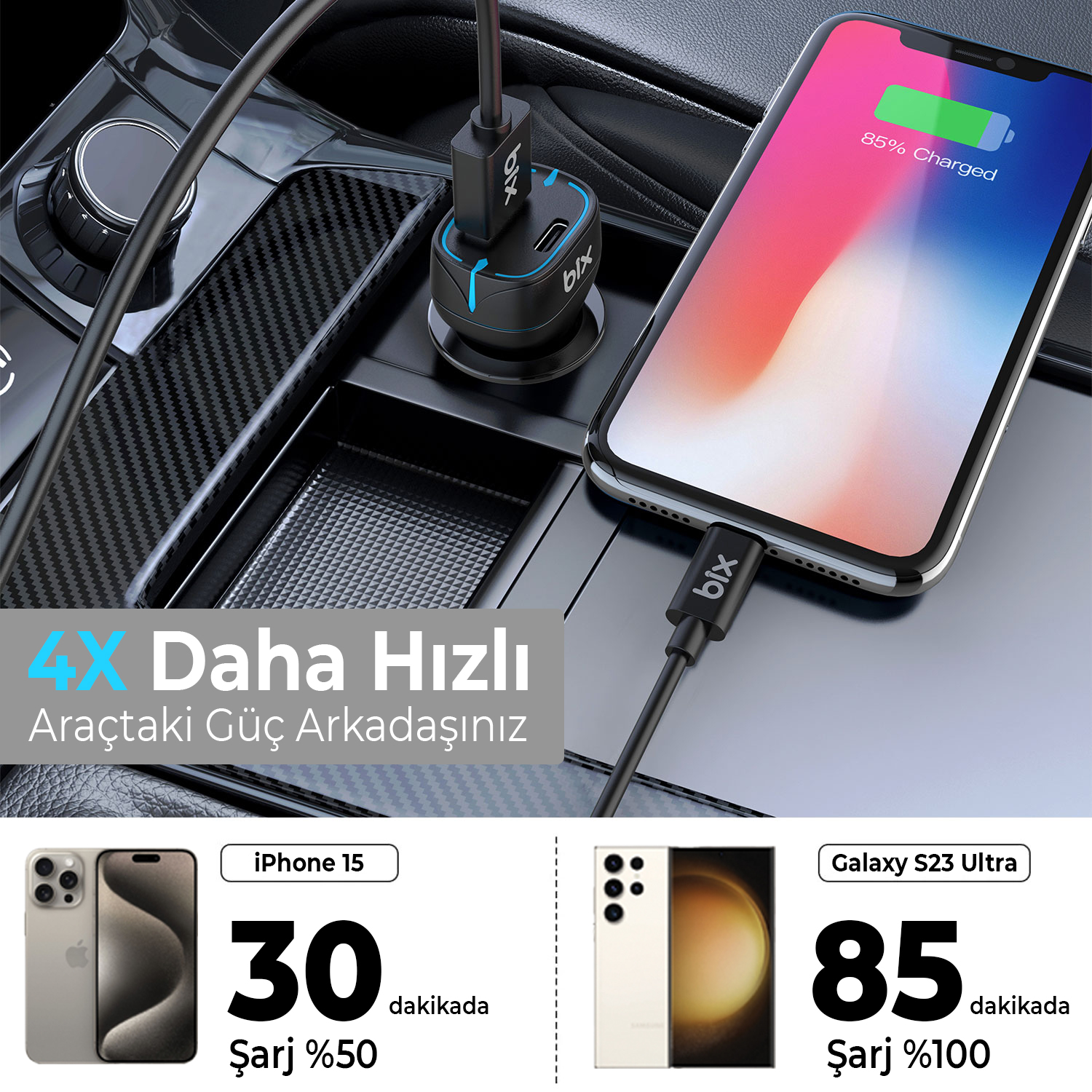 12V-24V girişiyle Sedan, SUV, kamyon ve diğer araçlarla da sorunsuz bir şekilde kullanabilirsiniz. iPhone, Samsung, Oppo, Huawei akıllı telefonları, iPad, GPS, kameralar, dizüstü bilgisayarlar vb. ile tam uyumlu olarak çalışmaktadır. Şık tasarımlı LED ışıklandırması ile aracınıza ayrı bir ambiyans katarken, hem USB-C portu hem de USB-A portu ile geniş bir kullanım alternatifi sunar. Her iki port da hızlı şarjı destekler ve Type-C portu maksimum 20W, USB çıkışı ise maksimum 18W güç vermektedir. PD 3.0 ve QC 3.0 teknolojisi ile uyumlu cihazlarınızı normal şarjlara göre 3 kat daha hızlı şarj desteği sağlar. Güvenlik protokolleriyle birlikte akıllı telefon, tablet, hoparlör vb. cihazlarınızdaki azalan şarj sorununu ortadan kaldırabilirsiniz.