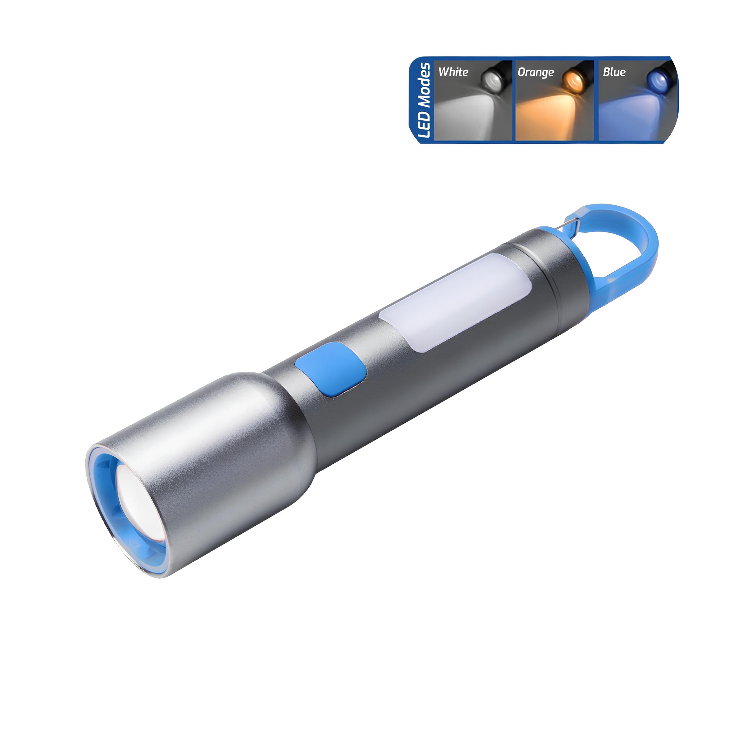 BX1010FL Beyaz-Mavi-Turuncu 3 Renk LED Özellikli Max 500 Lümen ve 500 Metreye Kadar Menzilli USB-C Şarj Edilebilir Kamp, Yürüyüş, Tamir, Güvenlik, Acil Durumlar İçin 10W El Feneri