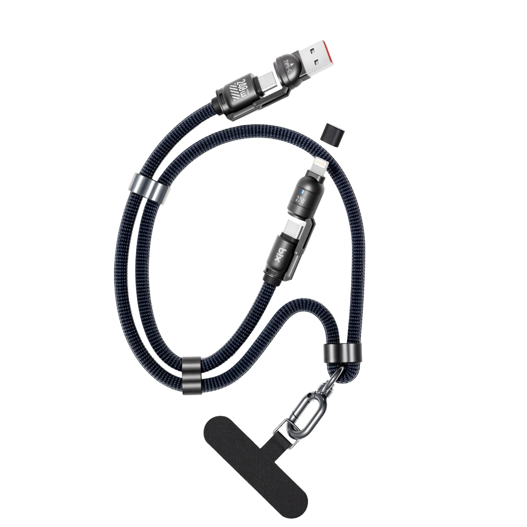 BX5IN1C 240W PD Hızlı Şarj ve Data Kablosu – USB-A & Type-C & Lightning Uyumlu, Askı İpi Tasarımlı, Boyuna Asılabilir, Premium Örgülü 1.5 Metre Koyu Mavi