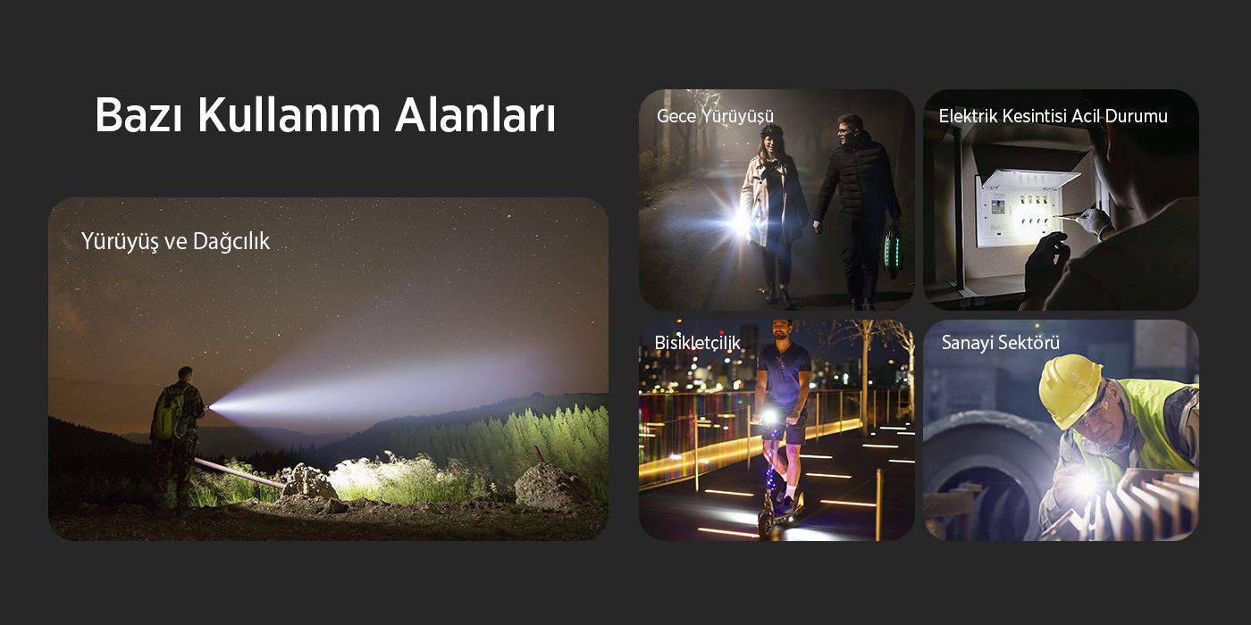 Bu el feneri, geniş bir kullanım alanına sahiptir. Kamp ve doğa yürüyüşlerinde, yüksek parlaklığı ve uzun menzili sayesinde ideal bir yol arkadaşıdır. Ev kullanımlarında, elektrik kesintilerinde veya tamirat işlerinde güvenilir bir ışık kaynağı sağlar. Acil durumlarda, SOS modu ile hayat kurtarabilir. Profesyonel kullanımda, dayanıklı yapısı ve uzun ömürlü piliyle zorlu koşullara uyum sağlar.