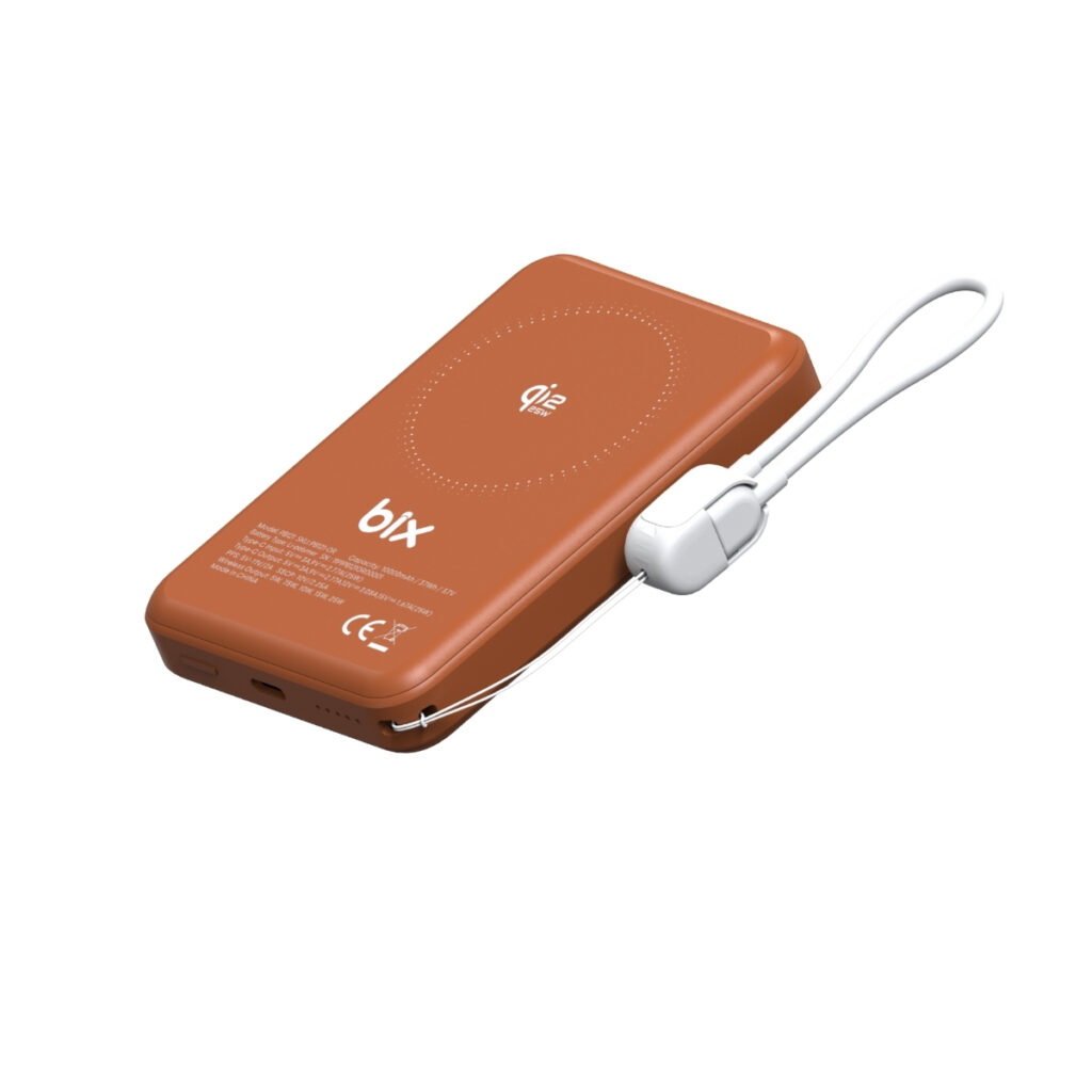 PB121 Qi2 25W Kablosuz Magsafe PD 3.0 10000mAh Semi-Solid State Bataryalı Powerbank Dahili USB-C Kablolu Taşınabilir Hızlı Şarj Cihazı Kahverengi